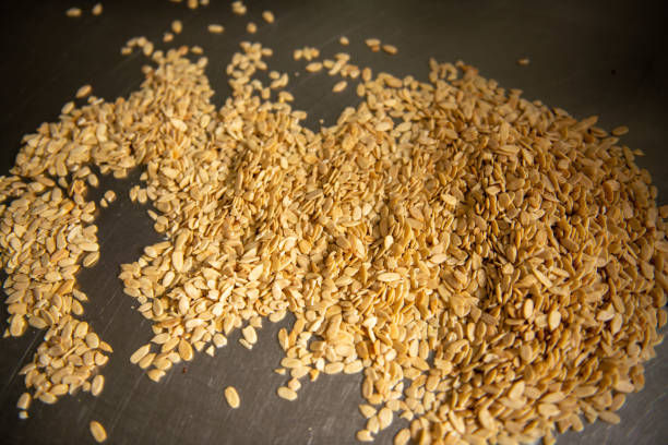 Roasted sesame seeds are sesame seeds that have been toasted or roasted to enhance their natural nutty flavor and crunch. The roasting process intensifies the seeds' flavor, making them more fragrant and giving them a deeper, slightly sweet taste compared to raw sesame seeds. Roasting also brings out the natural oils in the seeds, making them a popular addition to various dishes.